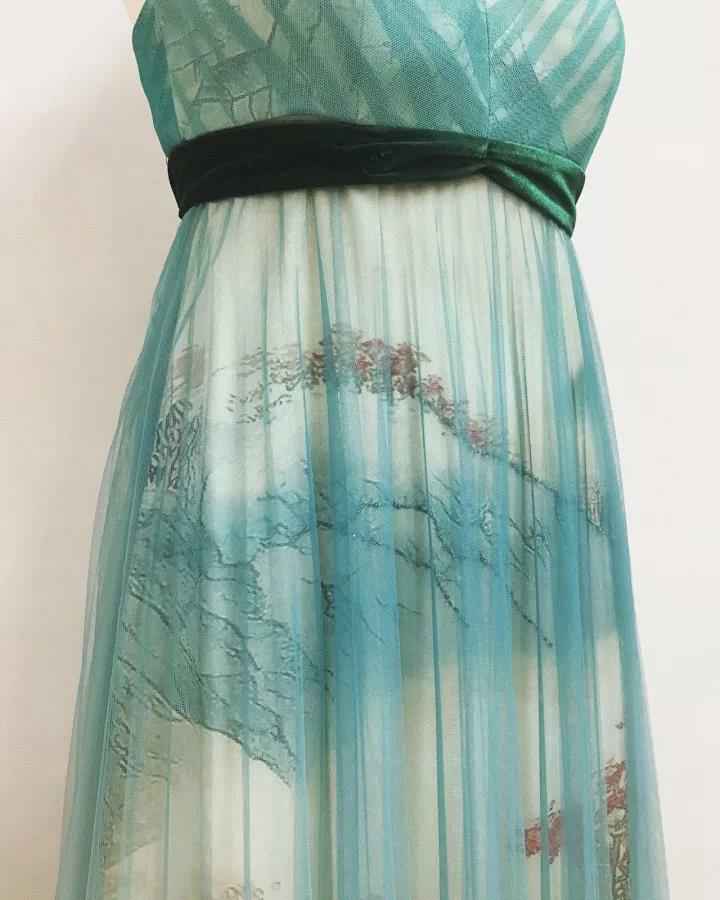 罗:在接到为中华小姐环球大赛设计礼服的时候,我们觉得挺荣幸,我觉得这又是一次全新的挑战和创作经历。我在想整个画面的时候就是12位佳丽在台上,背景是一幅非常壮丽美好的山水画的感觉。于是我们把桃花赋、山水青、玉兰颂演绎出来,这都是中国东方文化非常美好的一部分。这次参赛的佳丽们都是90后,是非常年轻、青春的女孩子。而我们的小礼服又比较仙,这个仙就是一种极致的美好。我希望在她们最年轻的时候,花开当珍惜,可以把最美好的系列让她们展现出来。我们的服装就是因为非常有灵性所以很美,能够把女孩子的独特的美丽激发出来。而在工艺上也非常有特点,包括花位,面料的运用,很能修饰脸部,衬托肤色,让她们走动的时候能有那种灵动的美感,有比较多的层次。我也很期待这次华姐的盛会。